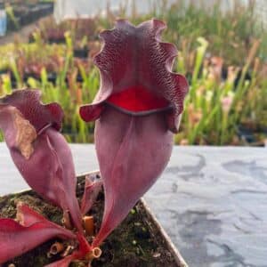 compact growing, very dark red form with white hairs inside the pitcherᅠ