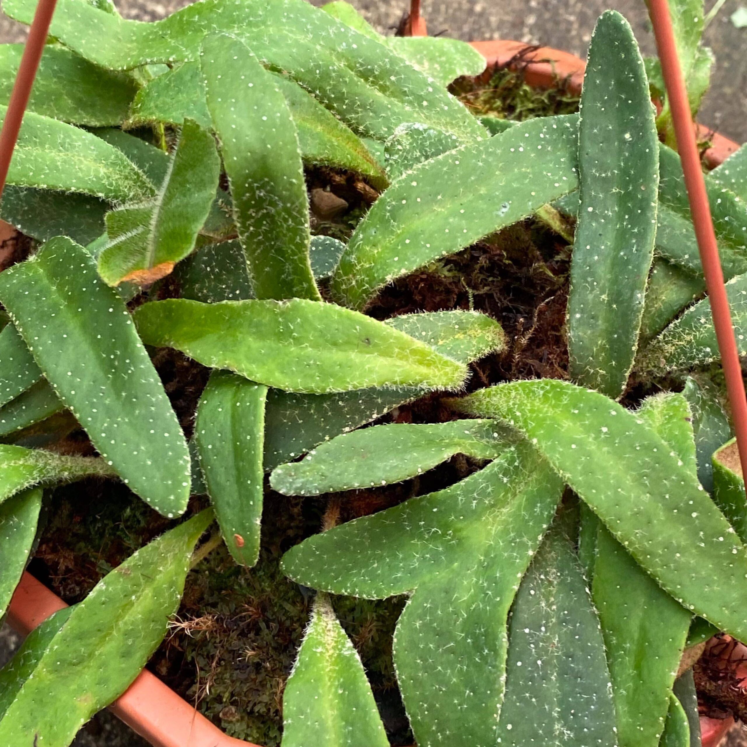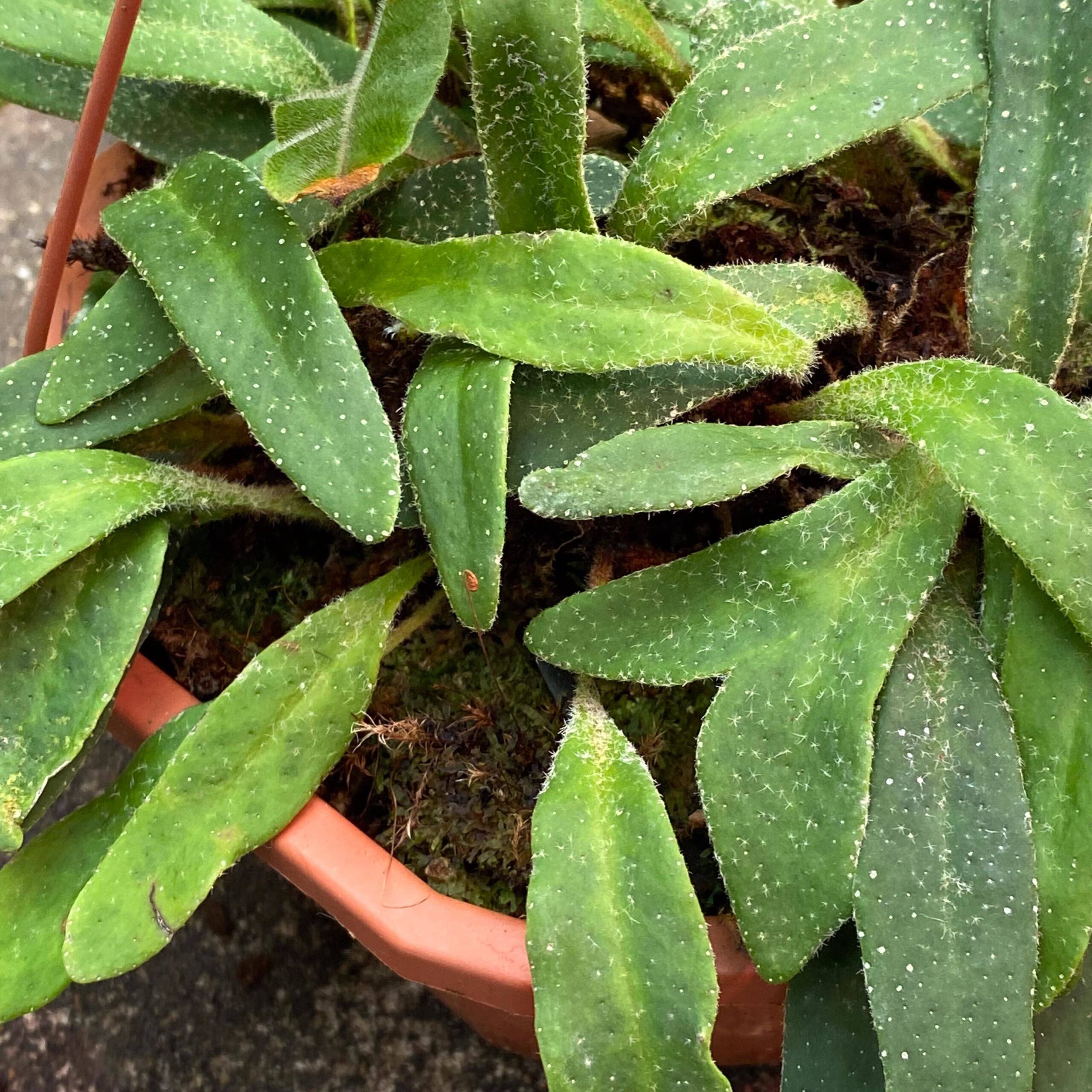 beautiful, elongated hairy leaves, slow grower