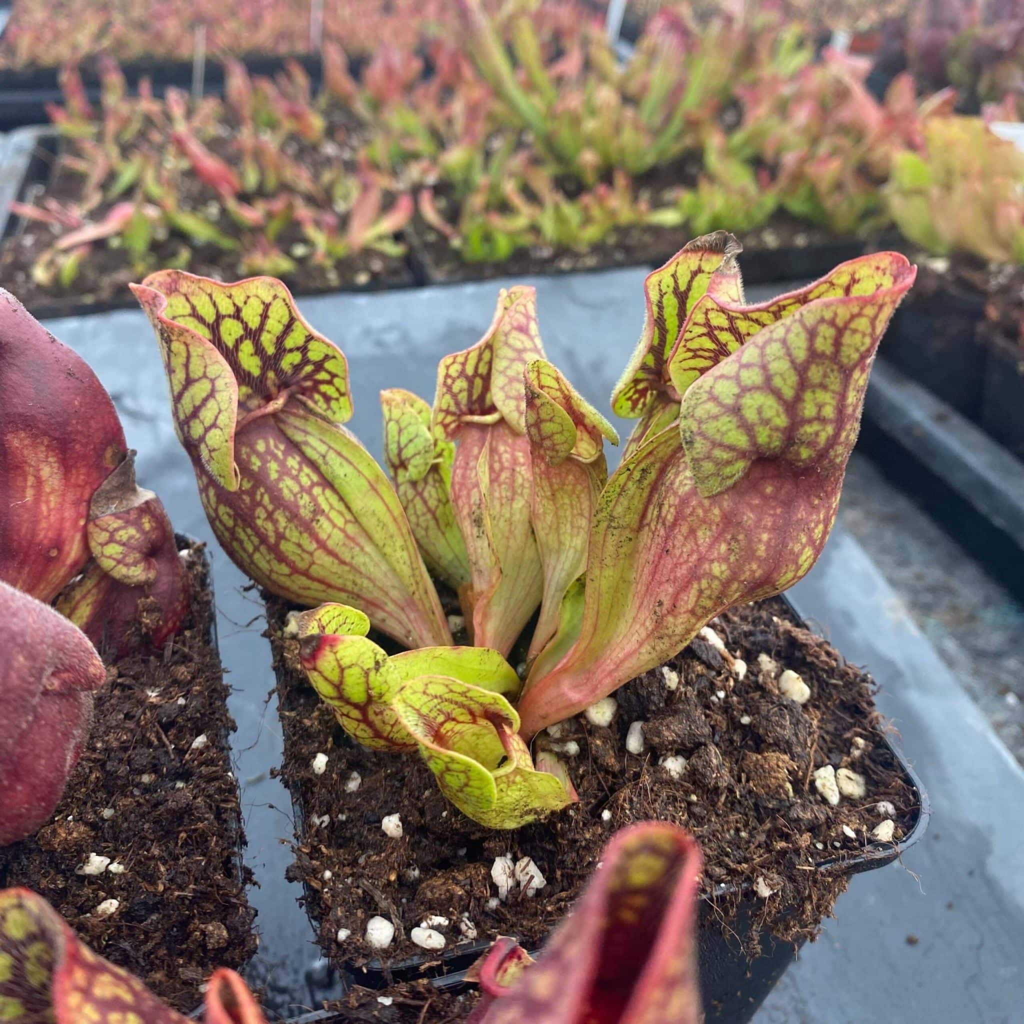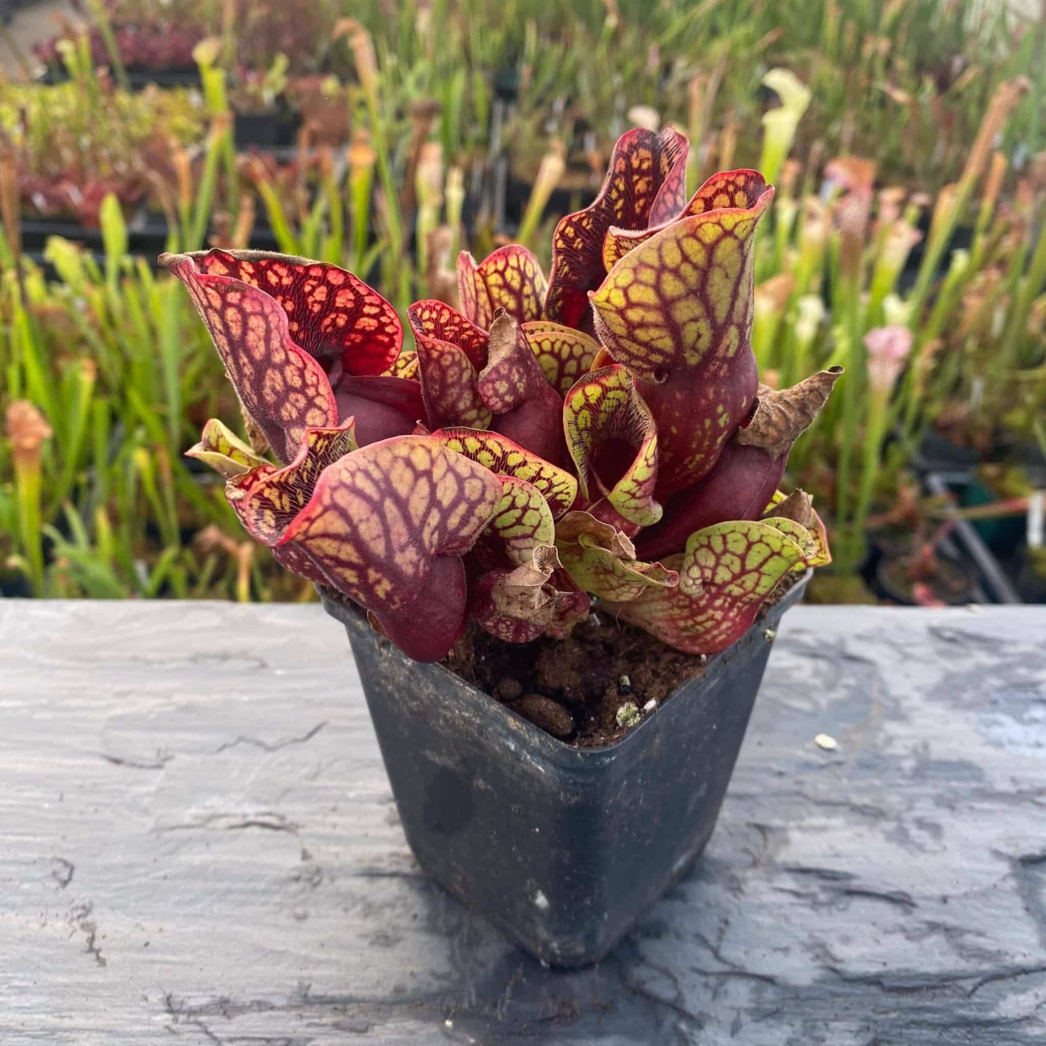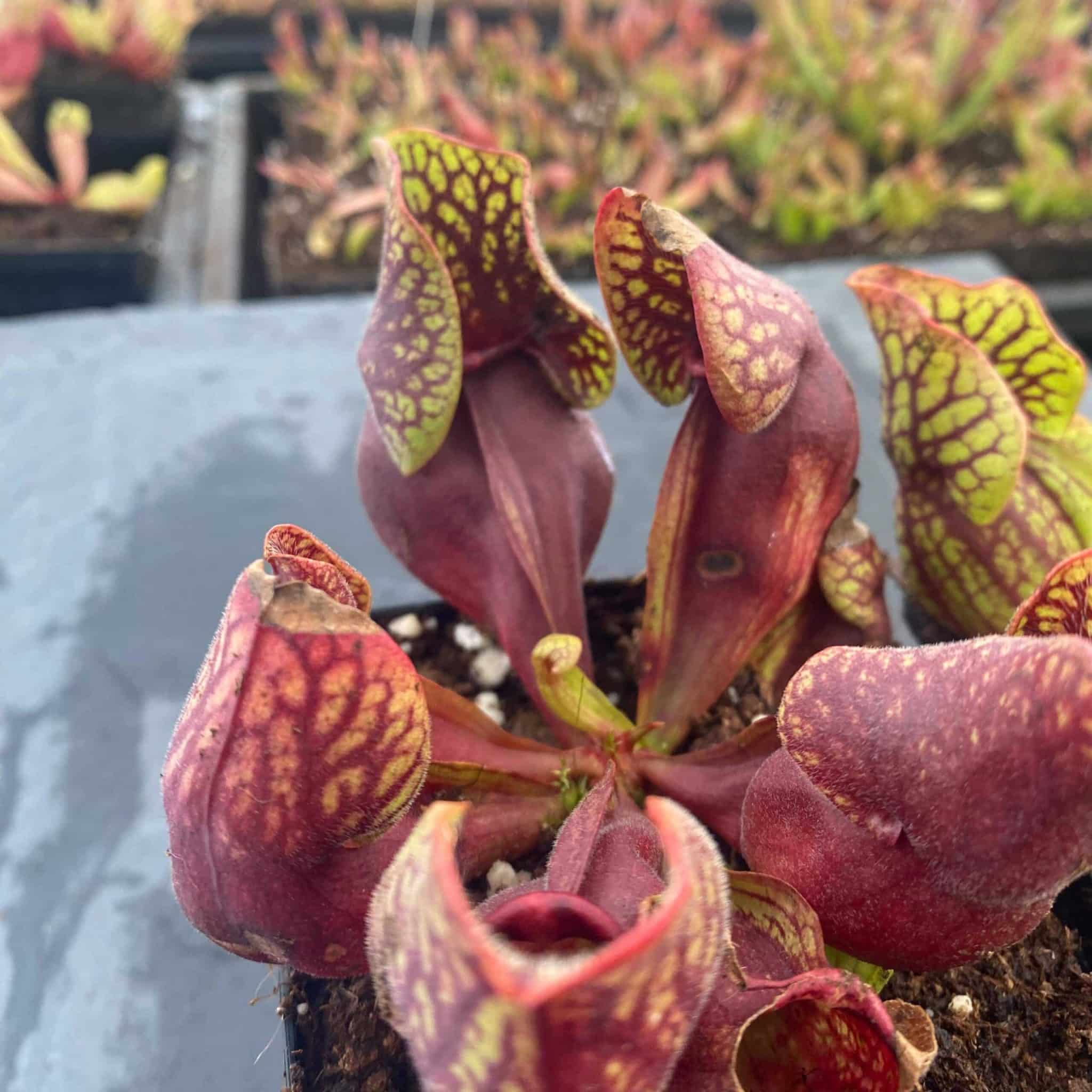 Sarracenia purpurea ssp. venosa „(Yellow Flower x luteola) x montana Tom’s Swamp“, 12-14 cm